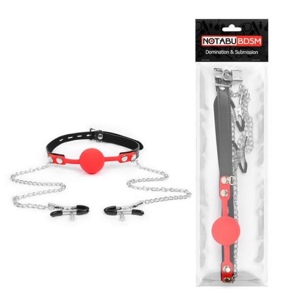 Уникальный девайс для самых провокационных игр - кляп с зажимами на соски "Notabu"! Когда каждое движение отзывается во всем теле...