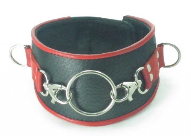 Широкий кожаный ошейник "BDSM-Арсенал" в страстном черно-красном цвете идеален для самых провокационных игр в стиле БДСМ!