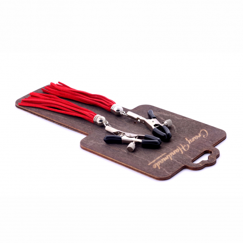 Зажимы-прищепки на соски "Crazy Handmade" с красными кисточками из замши