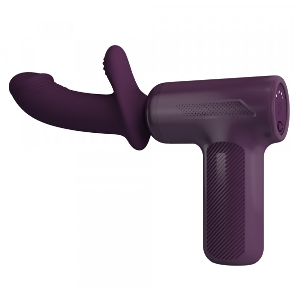 Форма вибратора максимально анатомична и не доставляет дискомфортных ощущений во время использования. Реалистичная головка с особенным загибом предназначена для поиска и массажа G-зоны, клиторальный отросток с внутренней поверхностью из россыпи шипиков интенсивно ласкает снаружи. Выполнен девайс в виде пистолета, который идеально ложится в руке и позволяет использовать игрушку с максимальным комфортом